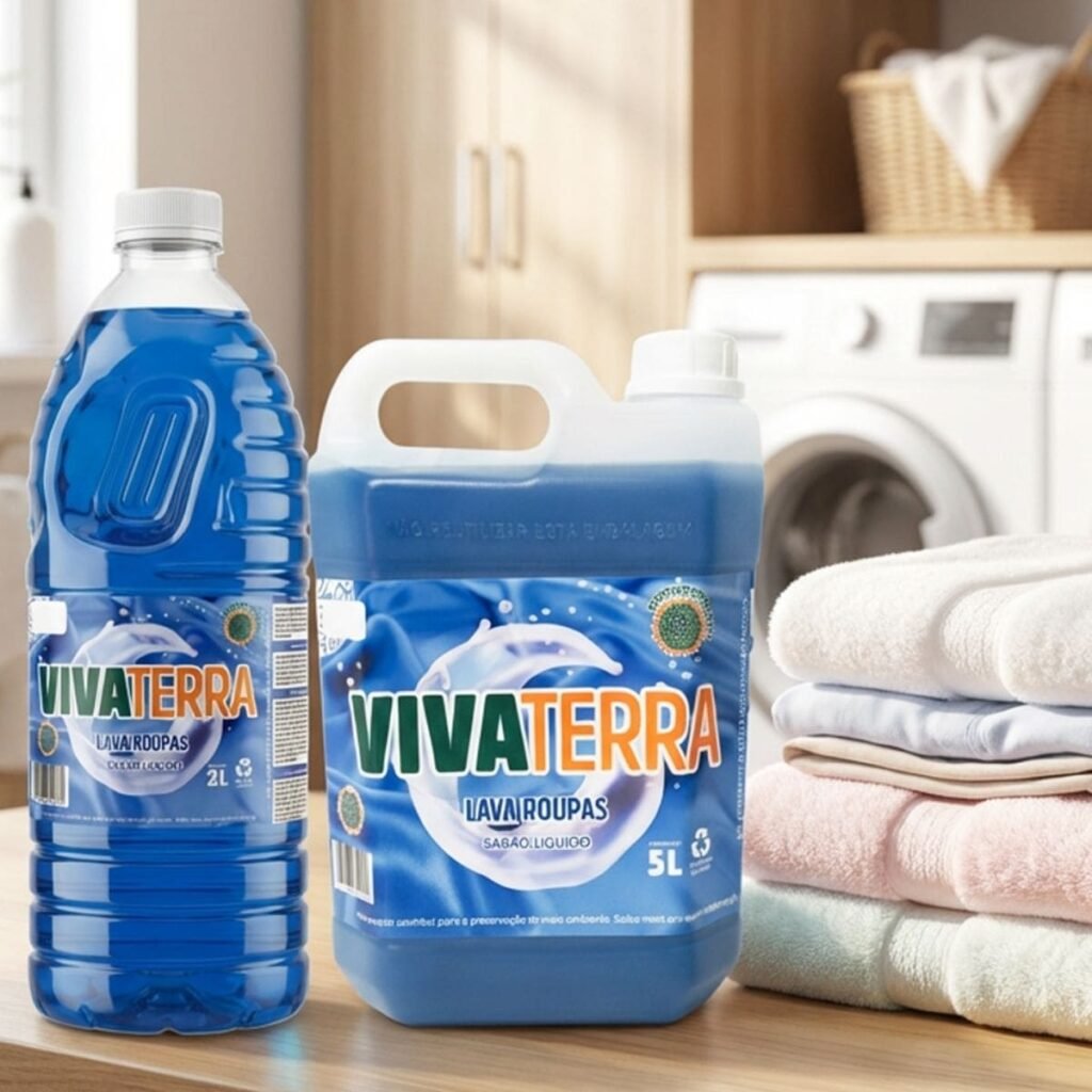 O lava roupas VivaTerra é concentrado, com fórmula vegetal, biodegradável e eficaz na remoção de manchas. Não deixa resíduos nos tecidos e tem aroma agradável. Ideal para quem quer roupas limpas e um planeta mais limpo.